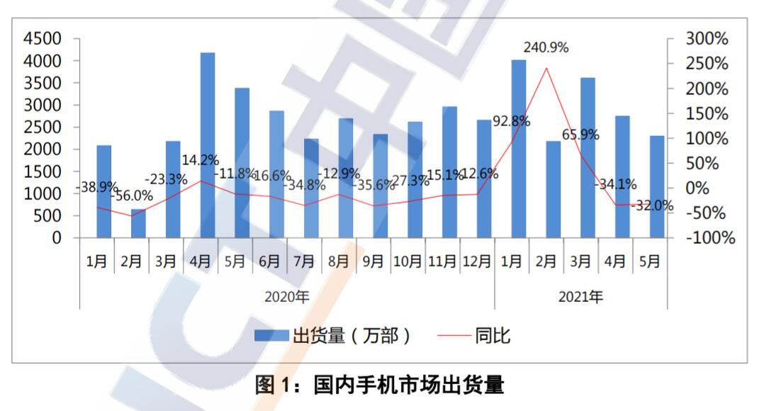 Smartphones shipped 22.604 million units in May 2021, down 30.8 percent year-on-year, accounting for 98.4 percent of cell phone shipments in the same period. A total of 21 new models were launched, down 19.2 percent year-on-year, accounting for 77.8 percent of the number of new models of cell phones launched in the same period.