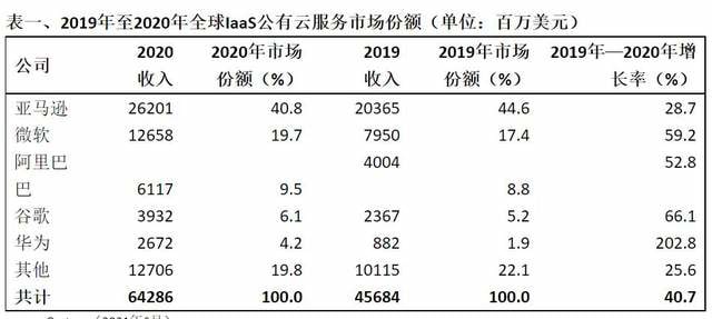 Amazon remains number one in the IaaS market in 2020, followed by Microsoft, Alibaba, Google and Huawei, respectively.