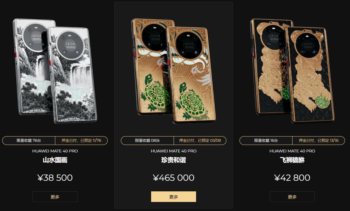 It currently offers only three Huawei Mate 40 Pro models and they are still on pre-order, priced at RMB 465,000, RMB 385,000 and RMB 428,000 respectively.