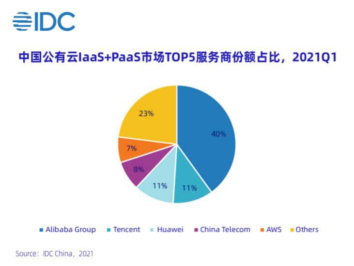 Alibaba Cloud ranked first with 40 percent share, while Tencent cloud and Huawei cloud ranked second and third respectively with 11 percent market share. CT Yun of China Telecom and AWS ranked fourth and fifth.