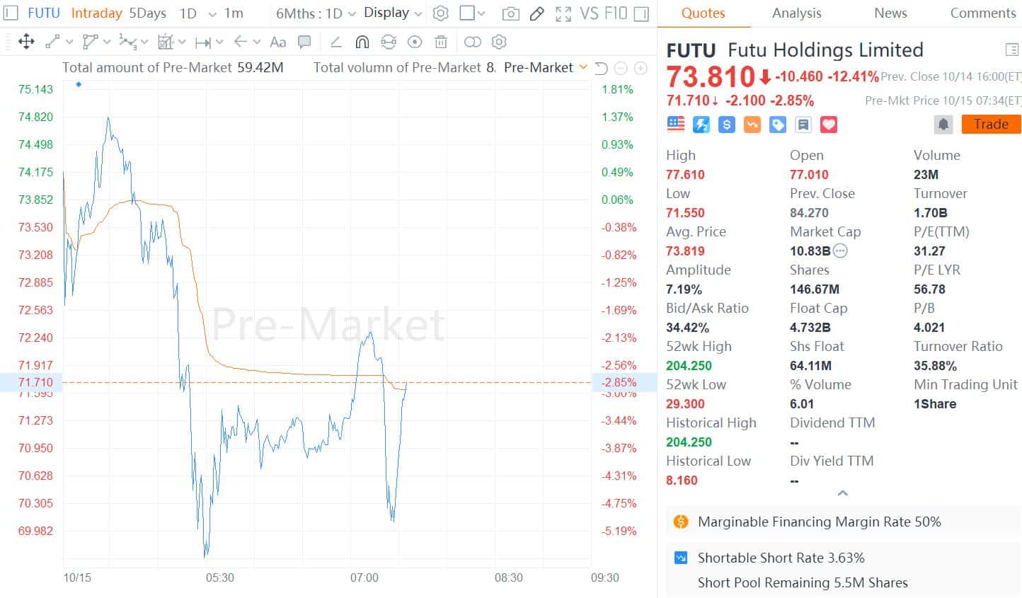 Shares of Futu Holdings, as well as Tiger Brokers, traded in the US, continued to fall in pre-market trading Friday, as the official securities media Securities Times said regulators are refining rules for them.